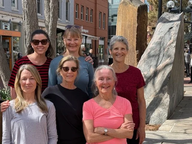 Dancers on the Mall for Boulder Arts Week: Kathleen Dugan, Nancy Smith, Amber Mazurana, Tonya Godwin & Peg Posnick near the West end of the Mall and the Split Rock Sculpture.